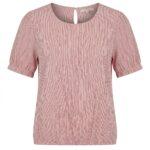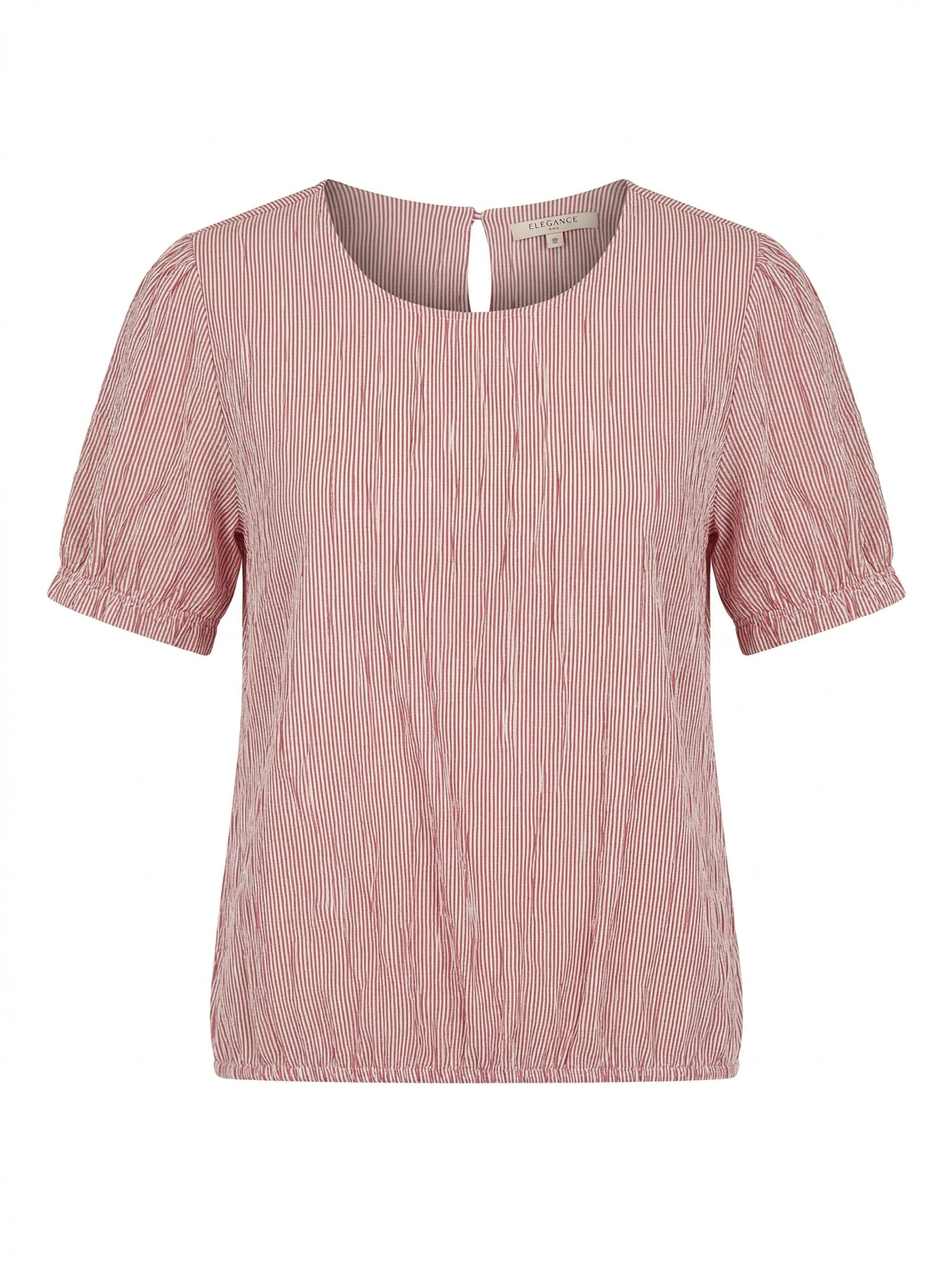Zomers blouse met korte mouwen afgewerkt met elastiek onderaan. Door licht geweven kwaliteit is het heel soepel elastisch.