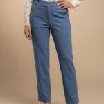 De jeans-look met elastische tailleband in onze soepele winterkwaliteit. De broek heeft bredere broekspijpen en valt soepel door , past heel mooi aan het lichaam.